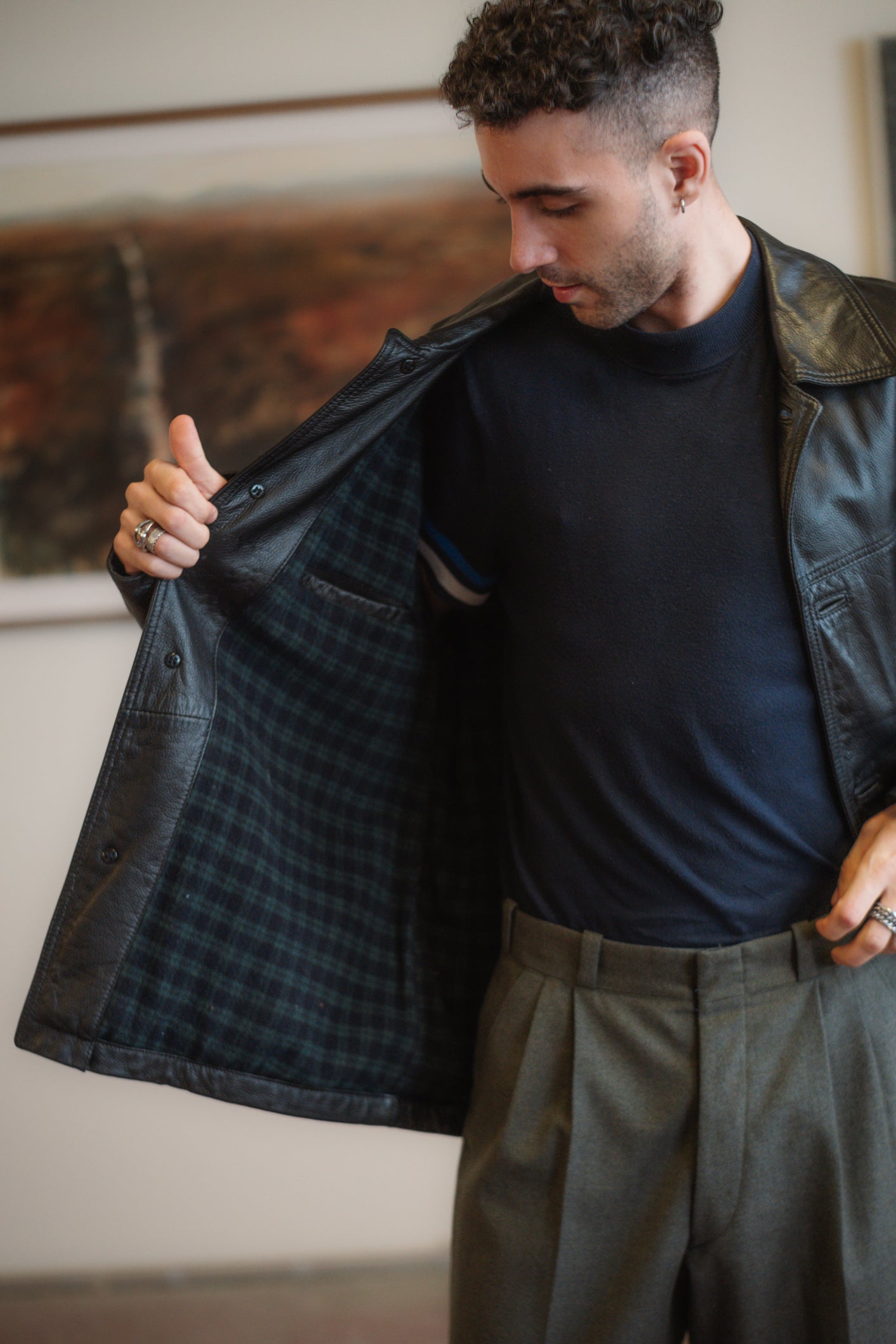 A classic leather jacket in a timeless design, crafted for a relaxed yet tailored fit. Featuring a luxurious wool tartan lining, this jacket combines style and warmth with practical details.