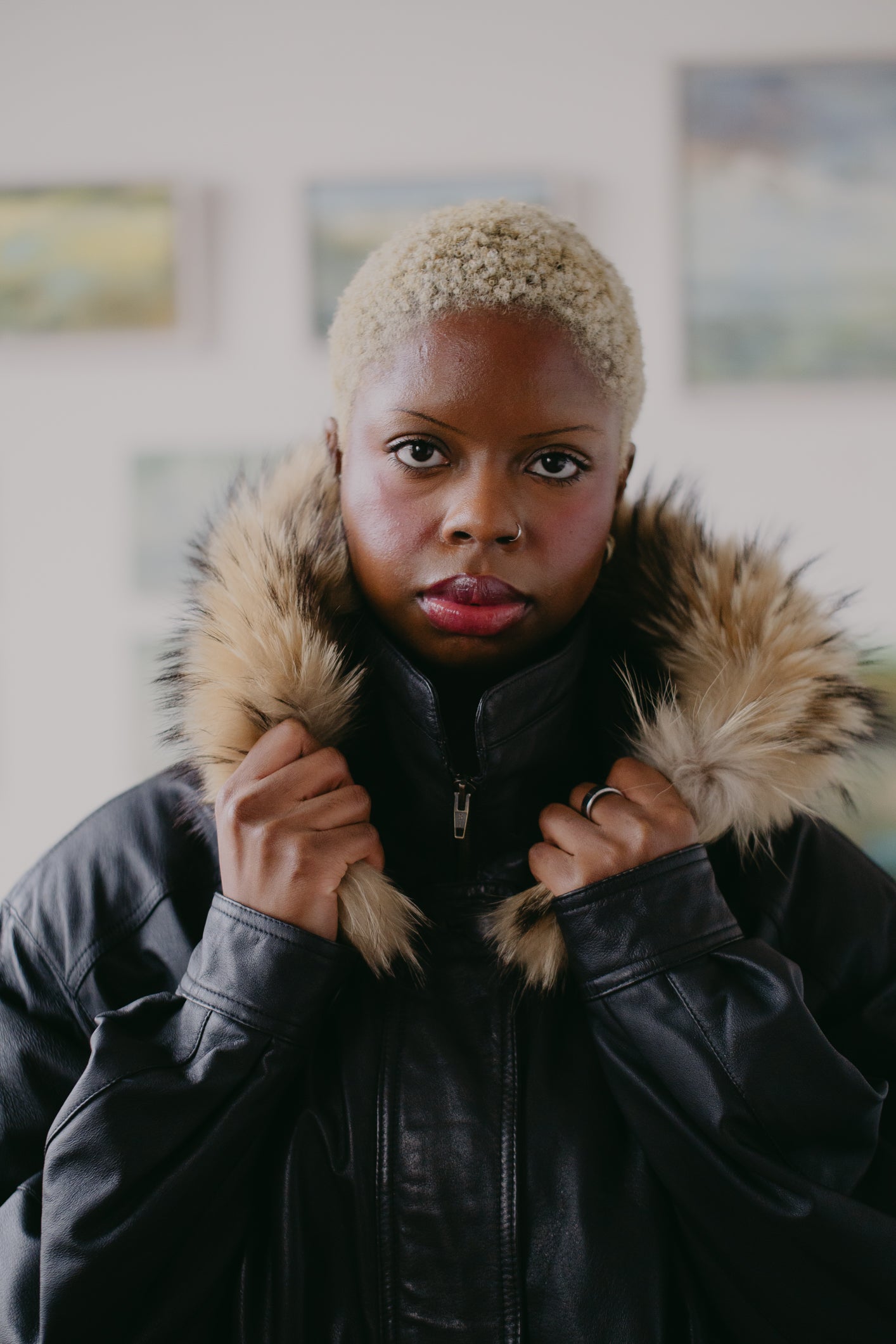 Real leather parka with removable hood with fur.