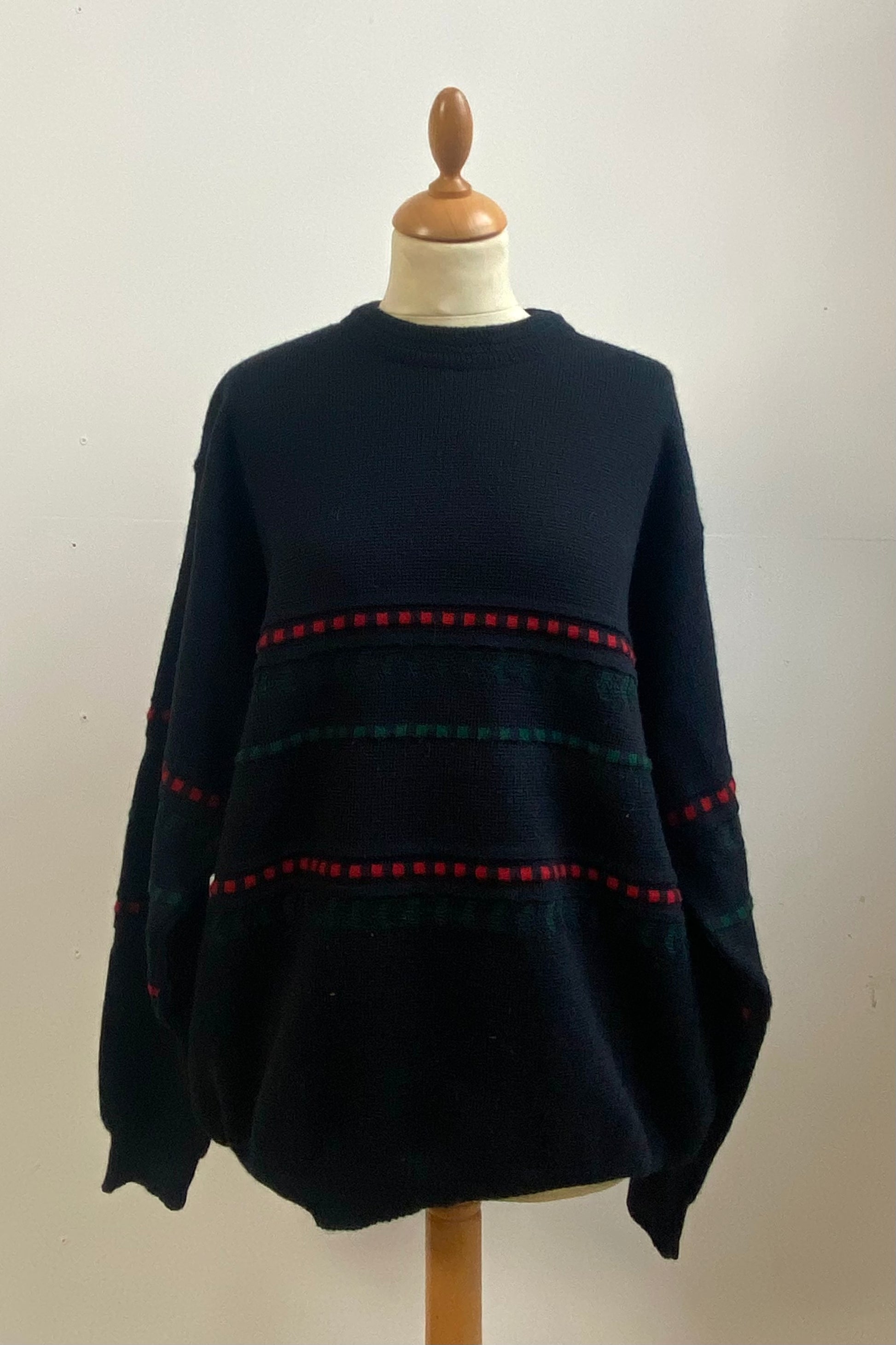 Crafted from a wool and acrylic blend and labelled by C&A. Recommended for a men’s size L, and it may also work well for size XL depending on the desired fit. Best suited for UK sizes 12–14. Please check the measurements below to ensure the best fit.
