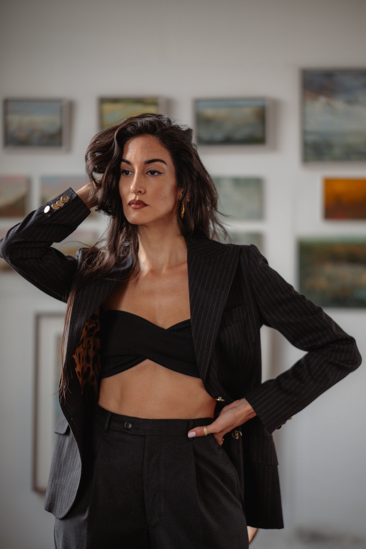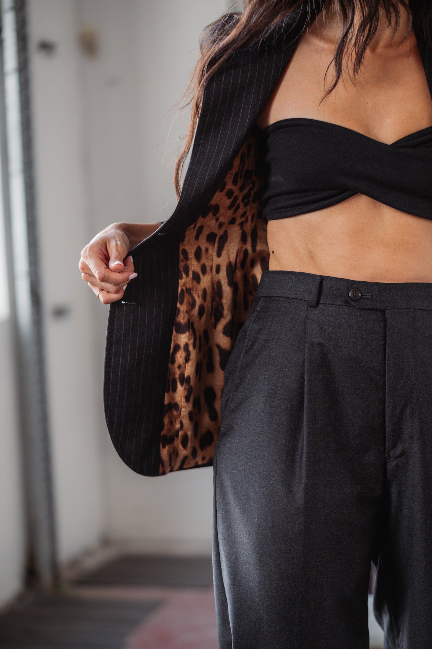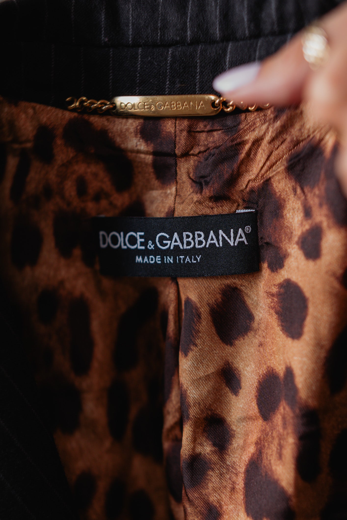 Category / SEO Tags: Dolce & Gabbana Blazer, Vintage Italian Blazer, Pinstripe Wool Blazer, Tailored Wool Jacket, Leopard Lined Blazer, UK Designer Vintage, XS Italian Blazer