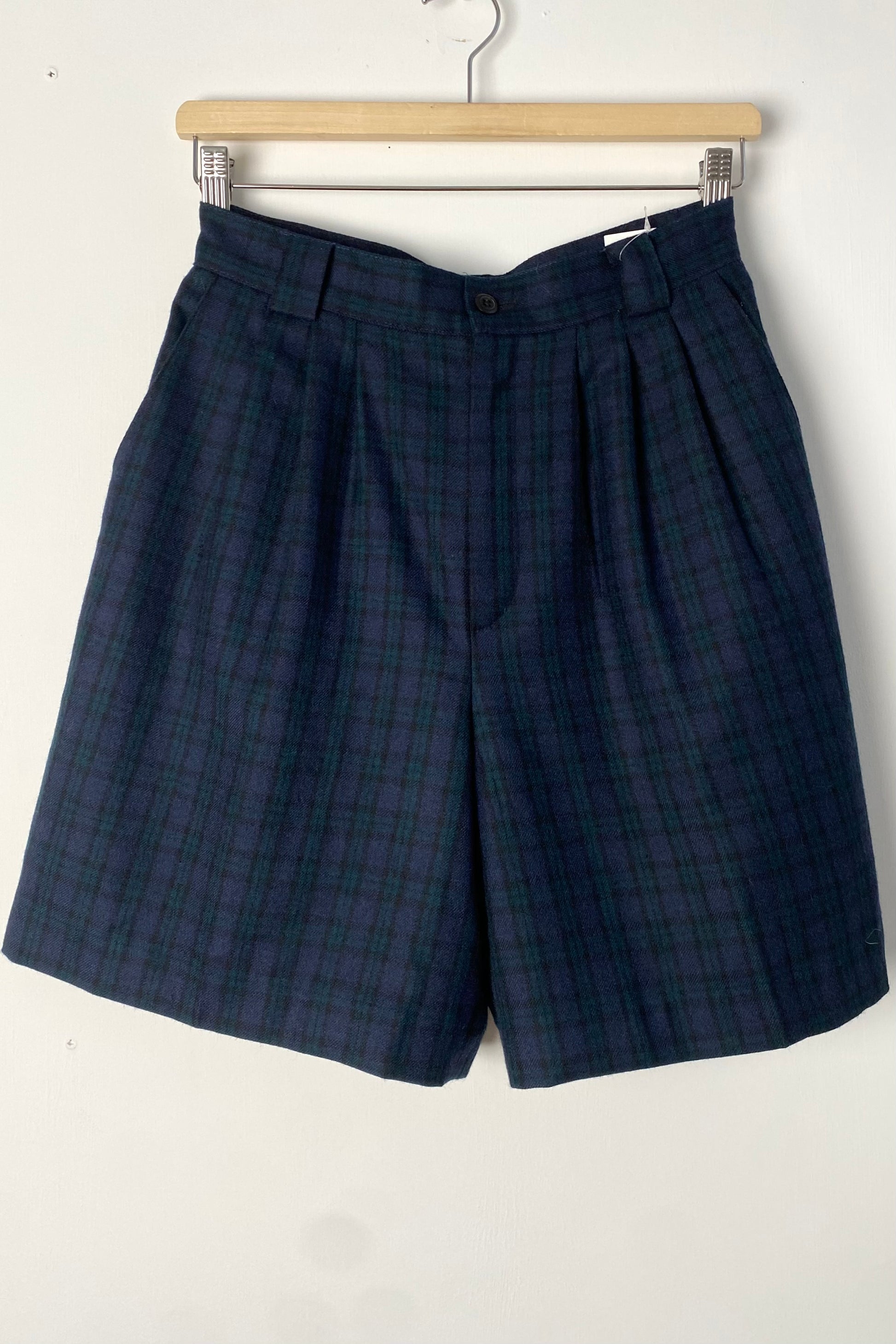 Wool Green-Navy Plaid Shorts SIZE S/M UK 8/10